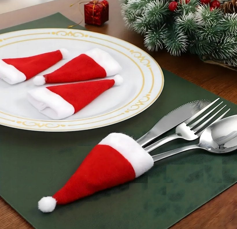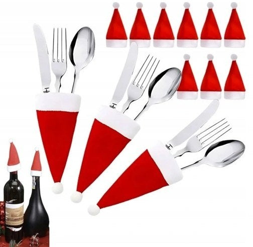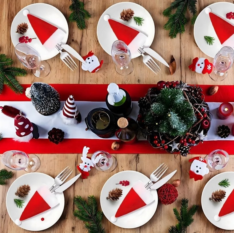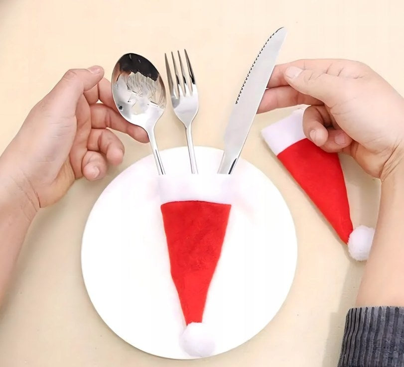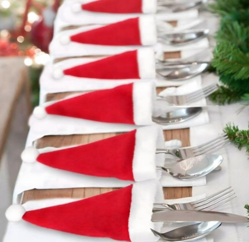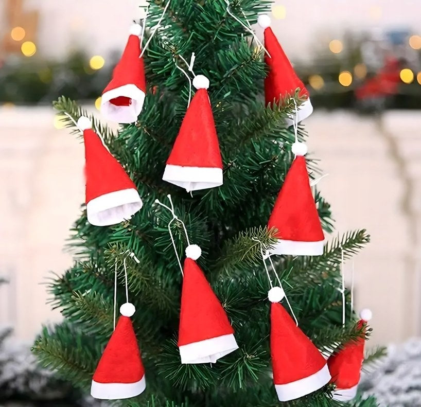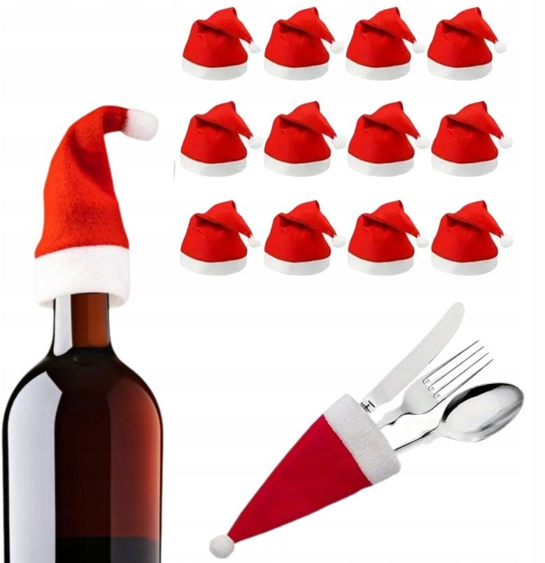 Urocze czapeczki mikołajowe z pomponem to idealna dekoracja świąteczna na stół, sztućce, butelki lub prezenty. Wprowadzą do wnętrza przytulny, świąteczny klimat i urozmaicą każdą aranżację.