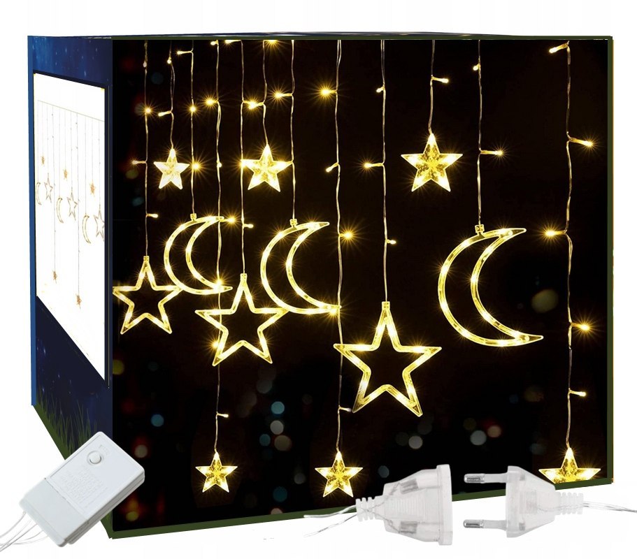 Kurtyna świetlna LED – girlanda księżyce i gwiazdy
