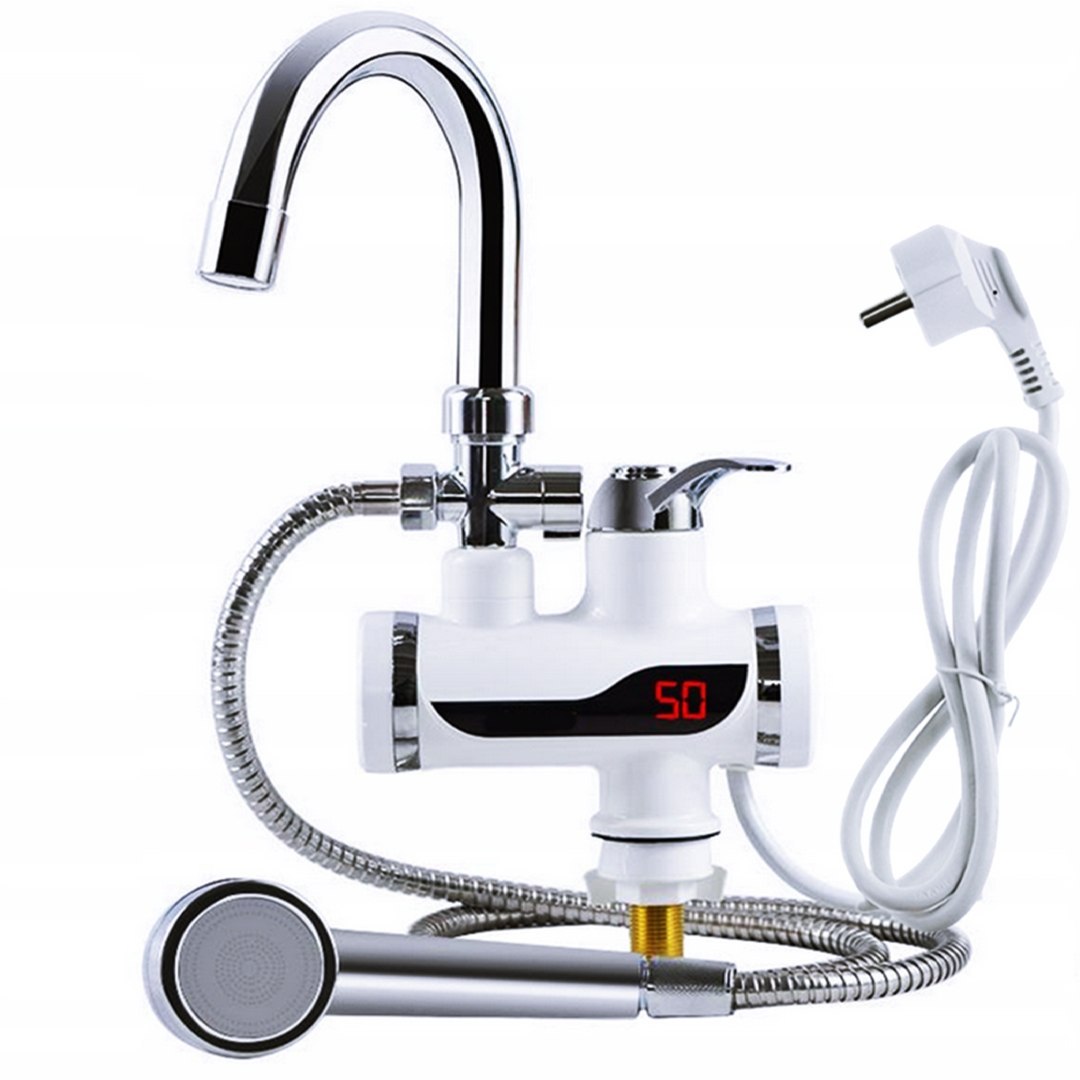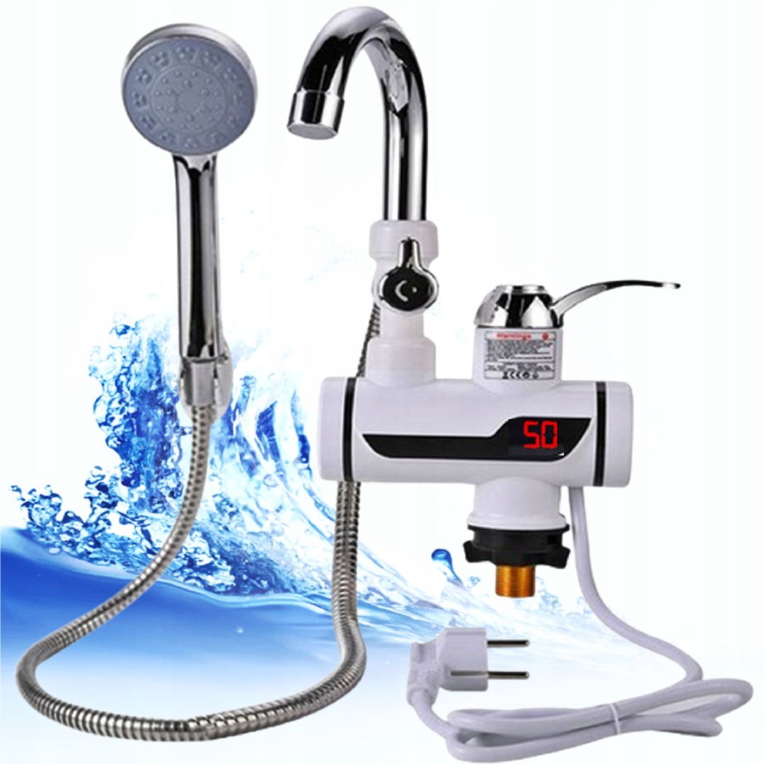 Podgrzewacz wody przepływowy z kranem i prysznicem 3000W – montaż na blat